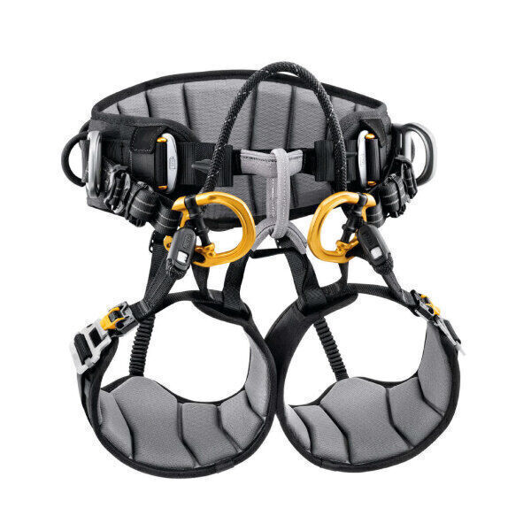 – ceinture, bretelles et tours de cuisse équipés de boucles autobloquantes DOUBLEBACK pour un réglage simple et rapide, – système de rangement des connecteurs MGO des longes d’antichute, sur chaque bretelle, permettant à l’utilisateur de ne pas être gêné par la longe et de garder les connecteurs à portée de main. En cas de chute, ce système permet le déploiement de l’absorbeur en libérant les connecteurs MGO, – points d’attache latéraux pouvant être rabattus pour éviter leur accrochage involontaire lorsqu’ils ne sont pas utilisés, – boucles autobloquantes DOUBLEBACK à l’arrière du harnais, entre la ceinture et les tours de cuisse, permettant un ajustement pour une utilisation sur le point d’attache dorsal. En cas de chute sur ce point, un réglage court permet de reprendre le poids sur les tours de cuisse et ainsi rester plus confortablement suspendu dans le harnais en attendant les secours.