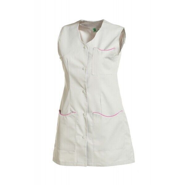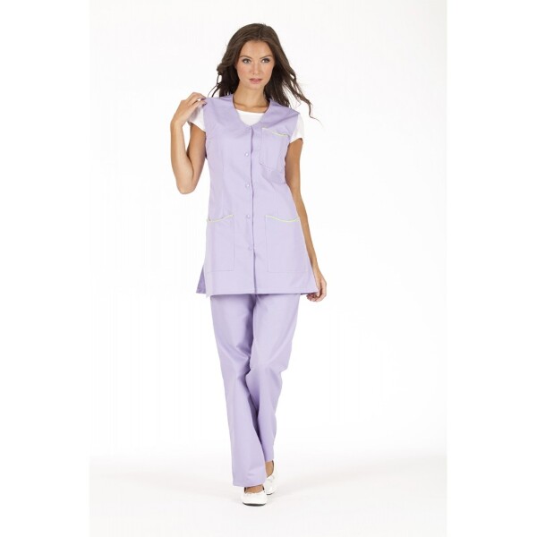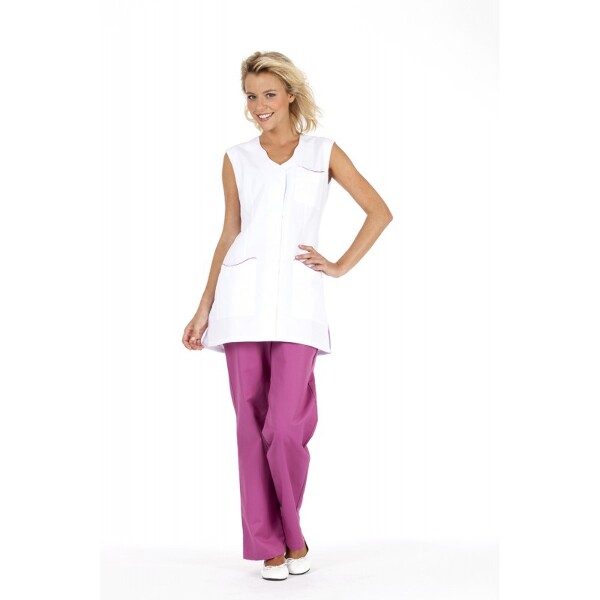 Une tunique femme sans manches à l'encolure élégante et aux finitions soignées : les passepoils arrondis et contrastés au niveau des poches donnent au modèle un style raffiné.